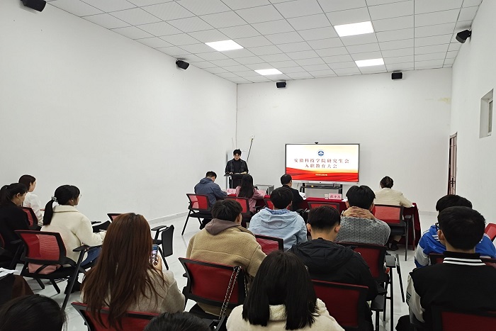 11月17日上午,校研究生会入职教育大会在凤阳校区大学生活动中心多功能厅举行,党委研工部副部长、研究生处副处长靳二辉,研究生管理科副科长、校研究生会秘书长兰彬,第一届研究生会全体成员参加会议。会议由韩晶璠主持。