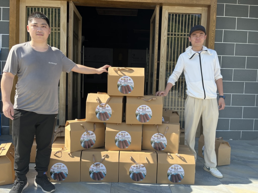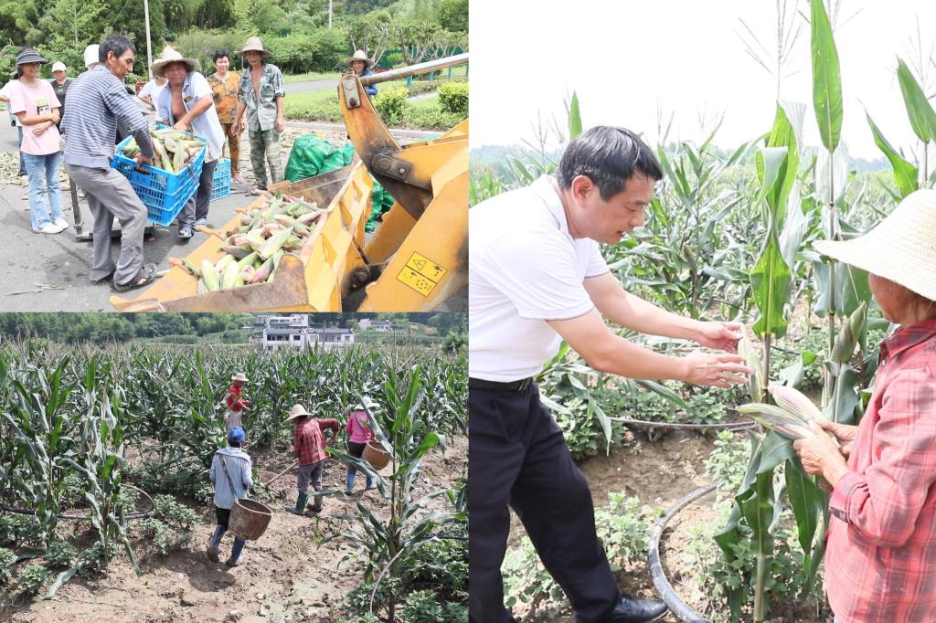 在溪头镇桃源村的菊花地上,菊花长势良好,云博网页版歙县贡菊科技小院驻站研究生公维勇、方俊超和村民正顶着烈日抢收玉米。采收的过程中,大家脸上洋溢着丰收的喜悦,一筐筐玉米被采摘下来称重、分销。