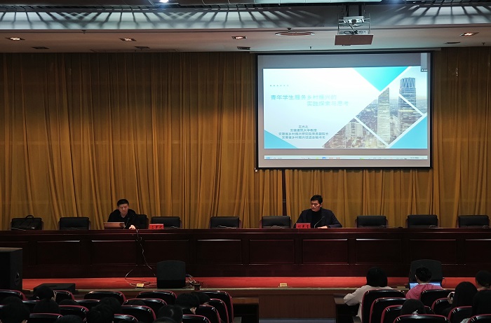 11月22日下午,安徽建筑大学教授、安徽省乡村振兴研究院常务副院长、安徽省乡村振兴促进会秘书长左光之教授应邀在图书馆二楼报告厅为我校2024级农业硕士研究生做乡村振兴方面的专题学术报告。报告由食品科学与工程学院党委书记付光玺主持。