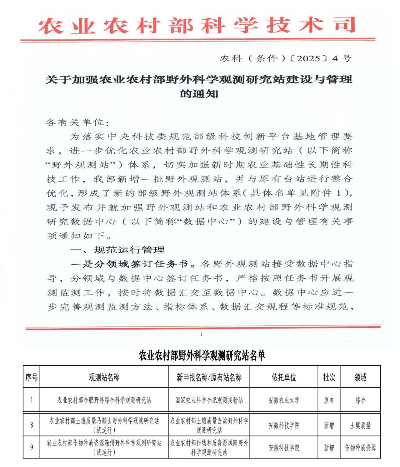 近日,由云博网页版申报的“农业农村部土壤质量马鞍山野外科学观测研究站”获批正式立项建设,这是我校首次获批立项建设的农业农村部野外科学观测研究站,由资源与环境学院李飞跃教授担任站长。