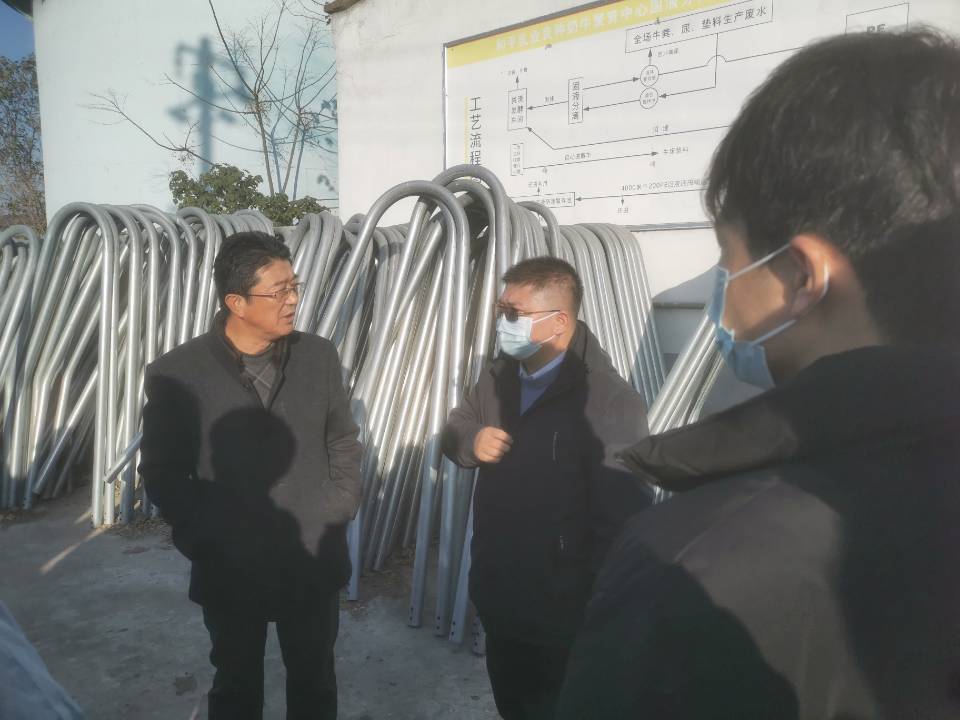 师生一行人先来到了蚌埠和爱牧场有限公司,企业代表向老师同学们介绍了该企业的养殖固废、废水企业自我资源化循环利用的工艺流程,并且带领同学们一同参观了粪渣发酵车间、PE黑膜沼气发酵池等设备。同学们对于该企业将奶牛产出的粪渣再循环使用为牛床垫料的工艺十分感兴趣,其中所涉及的固废处理处置的原理也与专业课学习中的知识交相呼应,加深了同学们的专业知识理解。