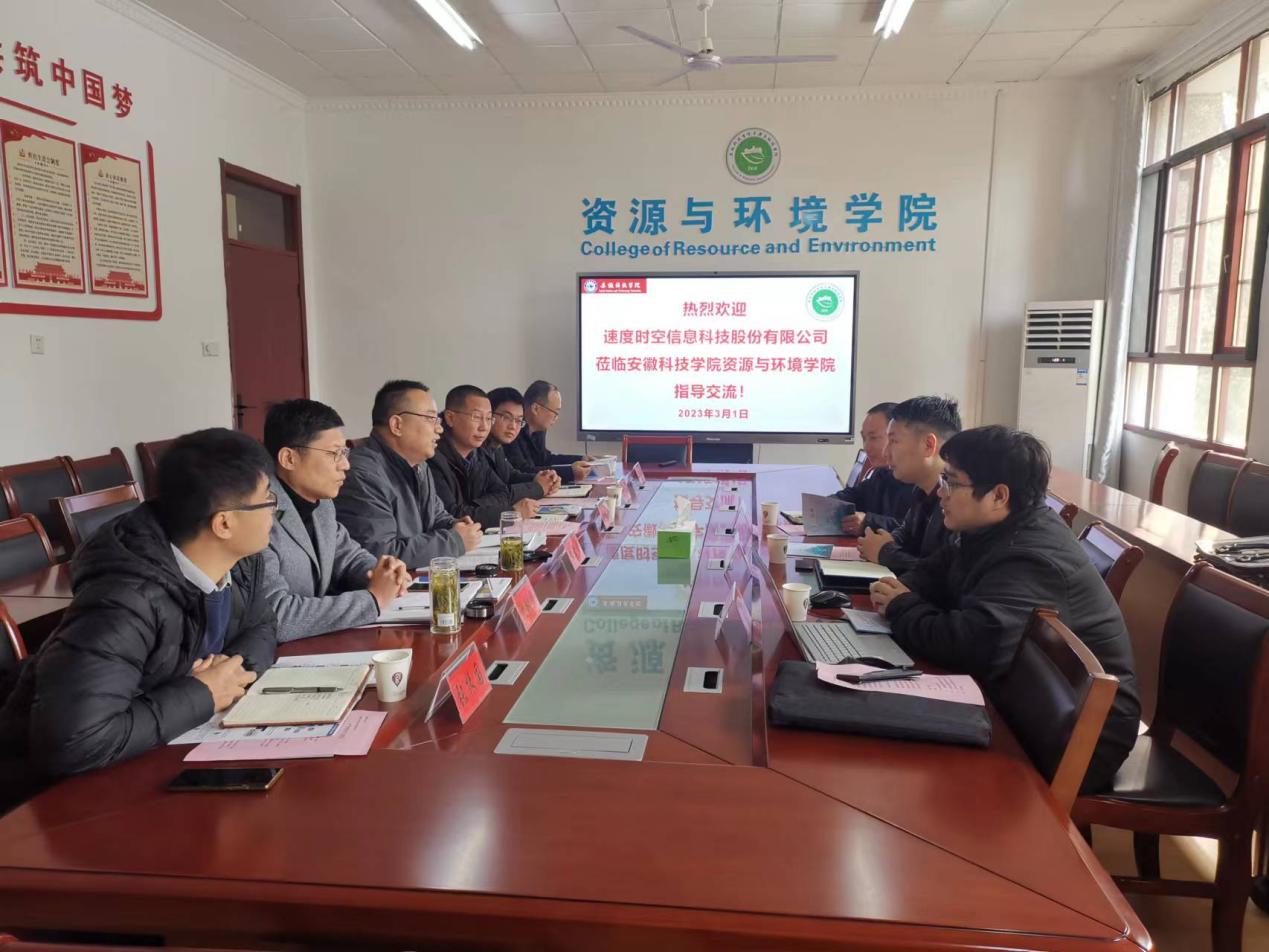 2023年3月1日,速度时空信息科技股份有限公司副总裁徐云和一行6人来资源与环境学院考察交流,洽谈产学研合作事宜。资源与环境学院党委书记、院长李孝良、副书记沈树周、副院长李飞跃、农业资源与环境系主任赵建荣、地理信息科学系主任张振国出席会议,云博网页版科研处副处长李同杰受邀参加会议。