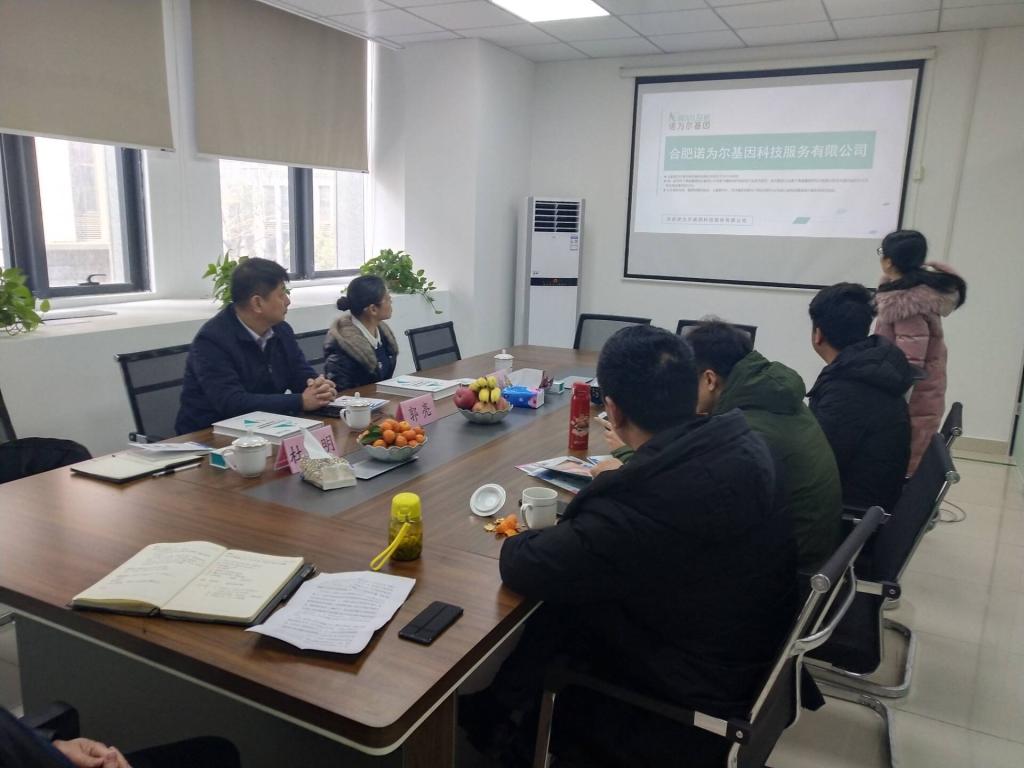 郭亮一行实地考察调研了合肥诺为尔基因科技服务有限公司,听取了公司创办人、校友许晓峰对公司经营状况及创业经历的介绍,为公司的发展、与母校合作等提出意见和建议。郭亮还诚挚邀请许晓峰抽出时间回母校开展合作洽谈,并为在校学生作创业报告、分享创业经验。