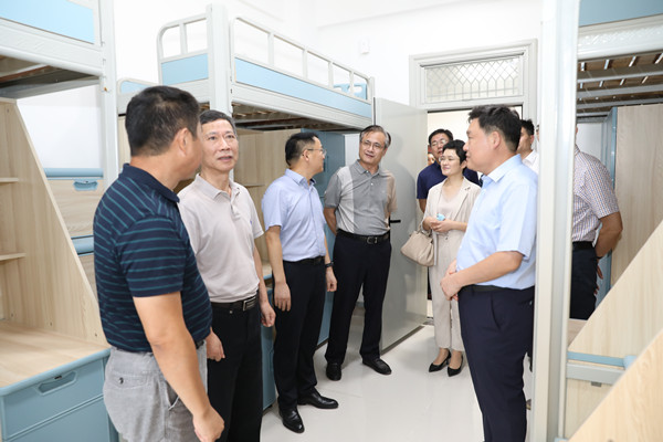 李震一行在南京信息工程大学党委副书记、校长李北群,南京信息工程大学党委常委、总会计师胡明保,天长市委副书记史法勇,天长市委常委、副市长肖新,天长市副市长周巧玲,南京信息工程大学金牛湖园区管委会主任郭爱民等陪同下,查看校区工程施工、周边环境、绿化物业、文化建设等情况。走访学生公寓、学校餐厅、智慧教室、会议中心、活动中心、心理健康中心等场所,了解新生入住前的防疫保障、物资保障、师生交通通勤安排等。