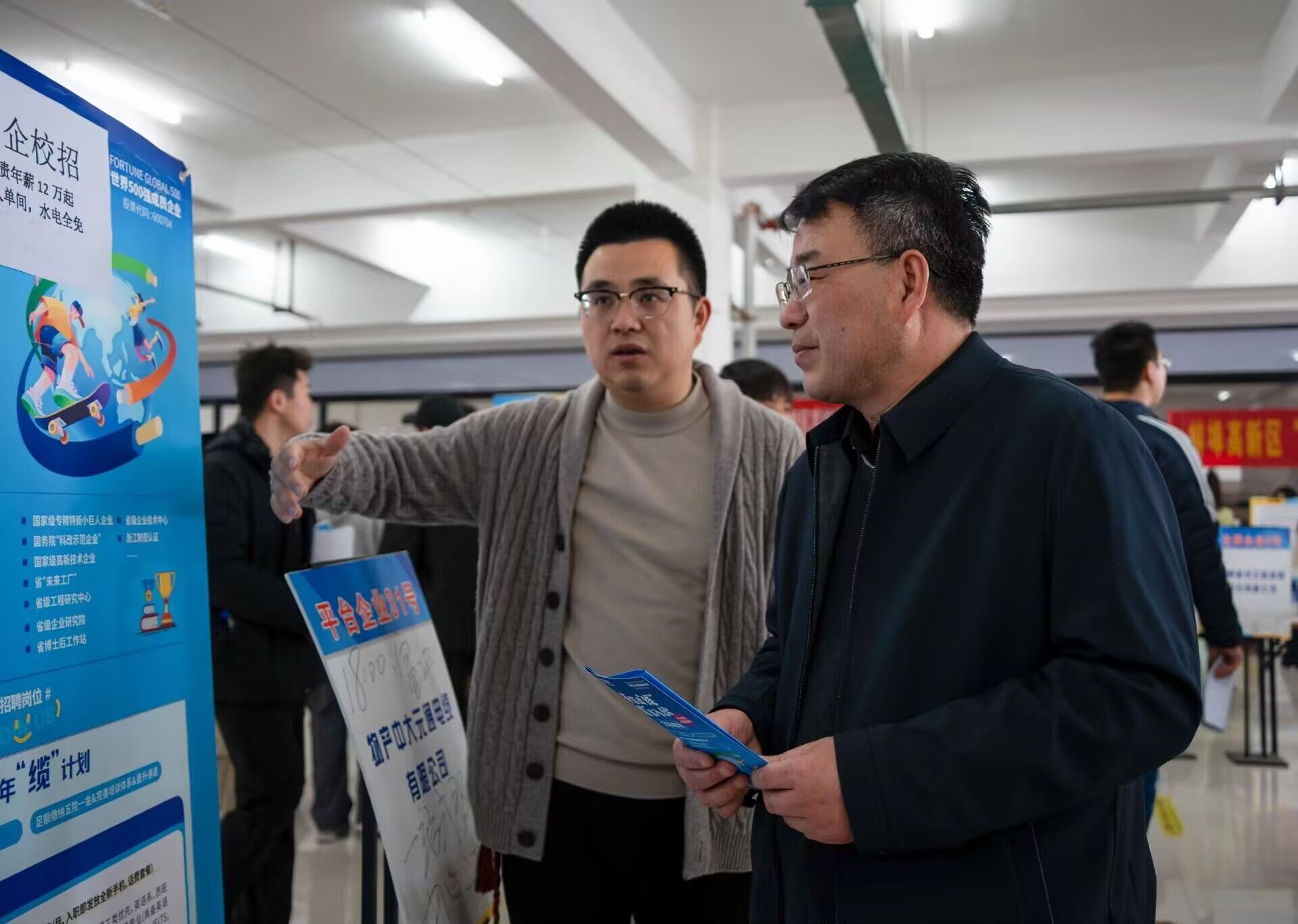 为落实全省高校2025届毕业生就业工作推进视频会议精神,根据学校2025届毕业生就业工作推进会议部署安排,3月21日,学校在龙湖校区举办2025年春季促就业攻坚行动首场就业集市,校党委委员、副院长赵伟峰到招聘会现场指导。
