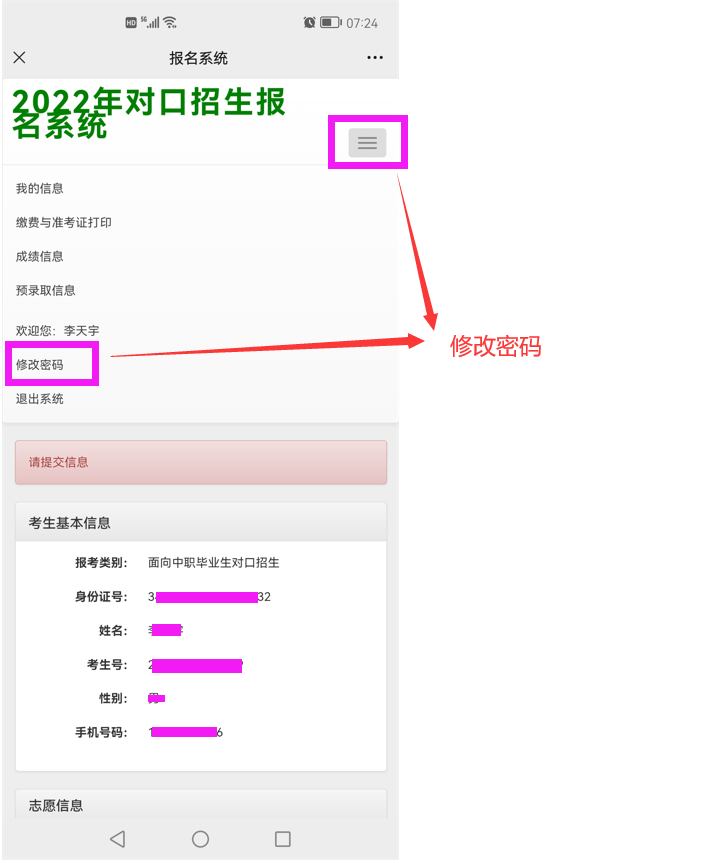 第三步:输入账号密码登录系统:账号:身份证号,密码:考生号后六位。