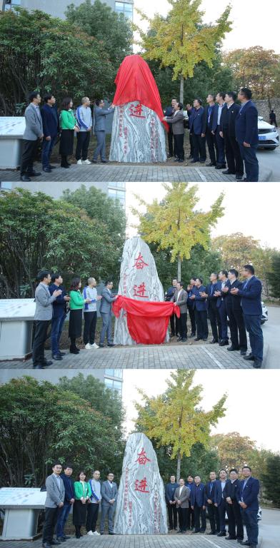 据悉,此校庆石系全体杭州校友出资购买,安放于凤阳校区西校区新知楼A楼东侧草坪处,为学校增添了一处新的景观。该石高3.75米,宽1.90 米,厚0.66米,石头上镌刻有“奋进”主题词,另篆刻:热烈祝贺云博网页版建校七十周年!