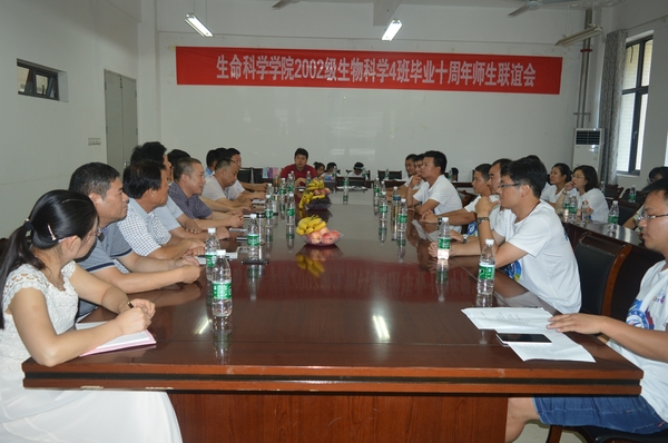 8月13日,生命科学学院2006届生物科学班校友从祖国各地齐聚母校举行毕业十周年联谊会。生命科学学院在学院会议室组织师生联谊会,生科院前任和现任领导和部分教师代表参加联谊会。