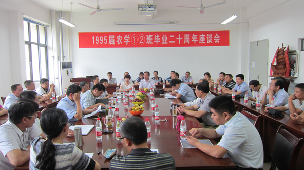 7月11日上午,95届农学专业两个班的40多名校友从全国各地重聚母校,举行毕业20周年座谈会。农学院在会议室举行师生联谊座谈会,副校长汪建飞、督导员刘正、纪委副书记刘赟斌、农学院党政领导、原部分任课教师等应邀出席座谈会。