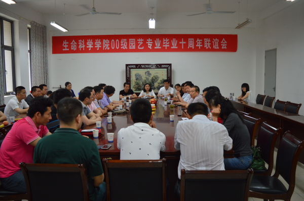 6月1日,生科院2000级园艺专业校友从祖国各地齐聚母校举行毕业十周年聚会,在母校共叙同窗情谊,感怀母校培育之恩。生科院在学院会议室组织师生联谊会,生科院前任和现任党政领导和部分教师代表出席联谊会。